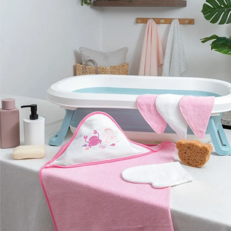 Prepárate para ese momento de relajación de tu bebe con el set de baño Baby Mink algodón ser el complemento ideal para este momento tan especial y único con tu pequeña.