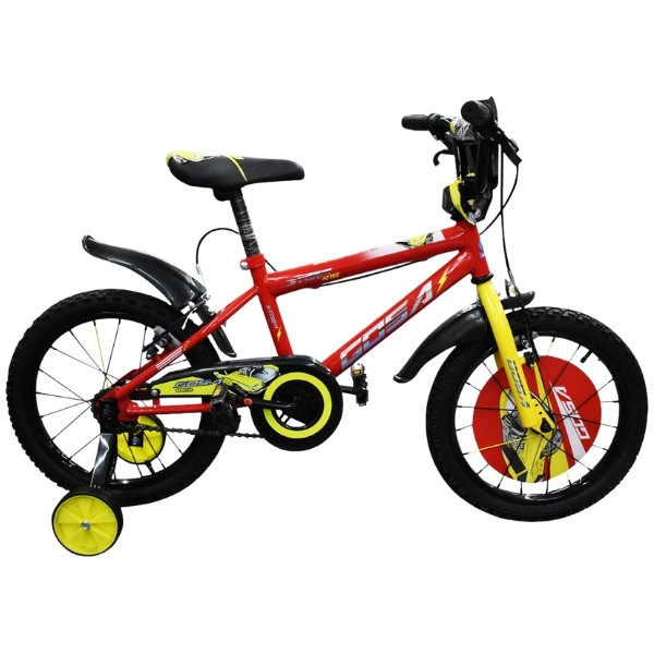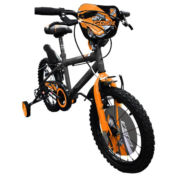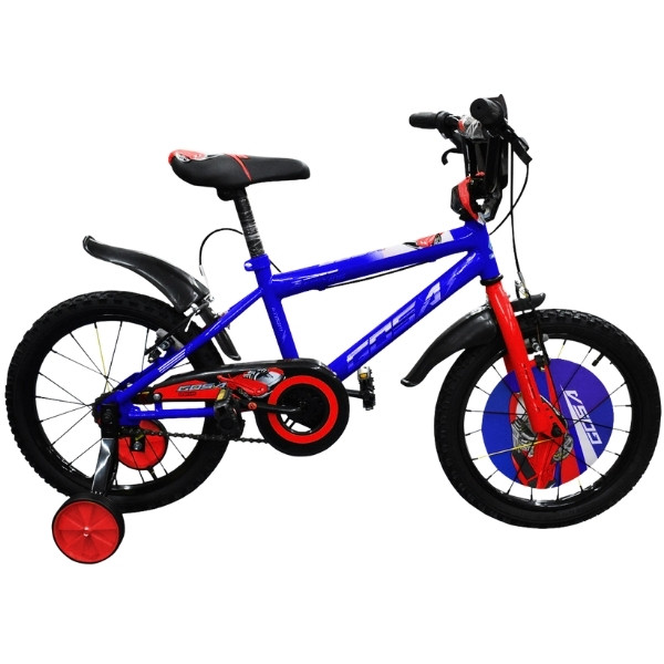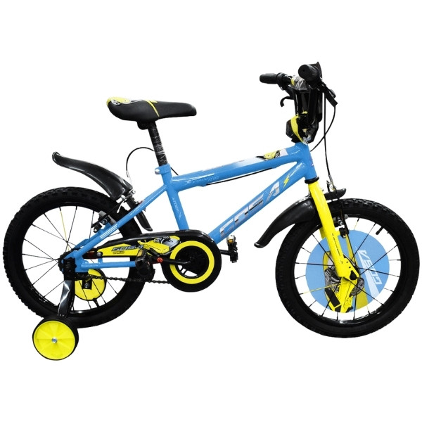 Bicicleta rodada 16 con cuadro de acero, rines de acero, con frenos V-brake de acero, bloqueo para tubo de asiento, ruedas laterales, cubrecadenas, salpicaderas de plástico y display delantero