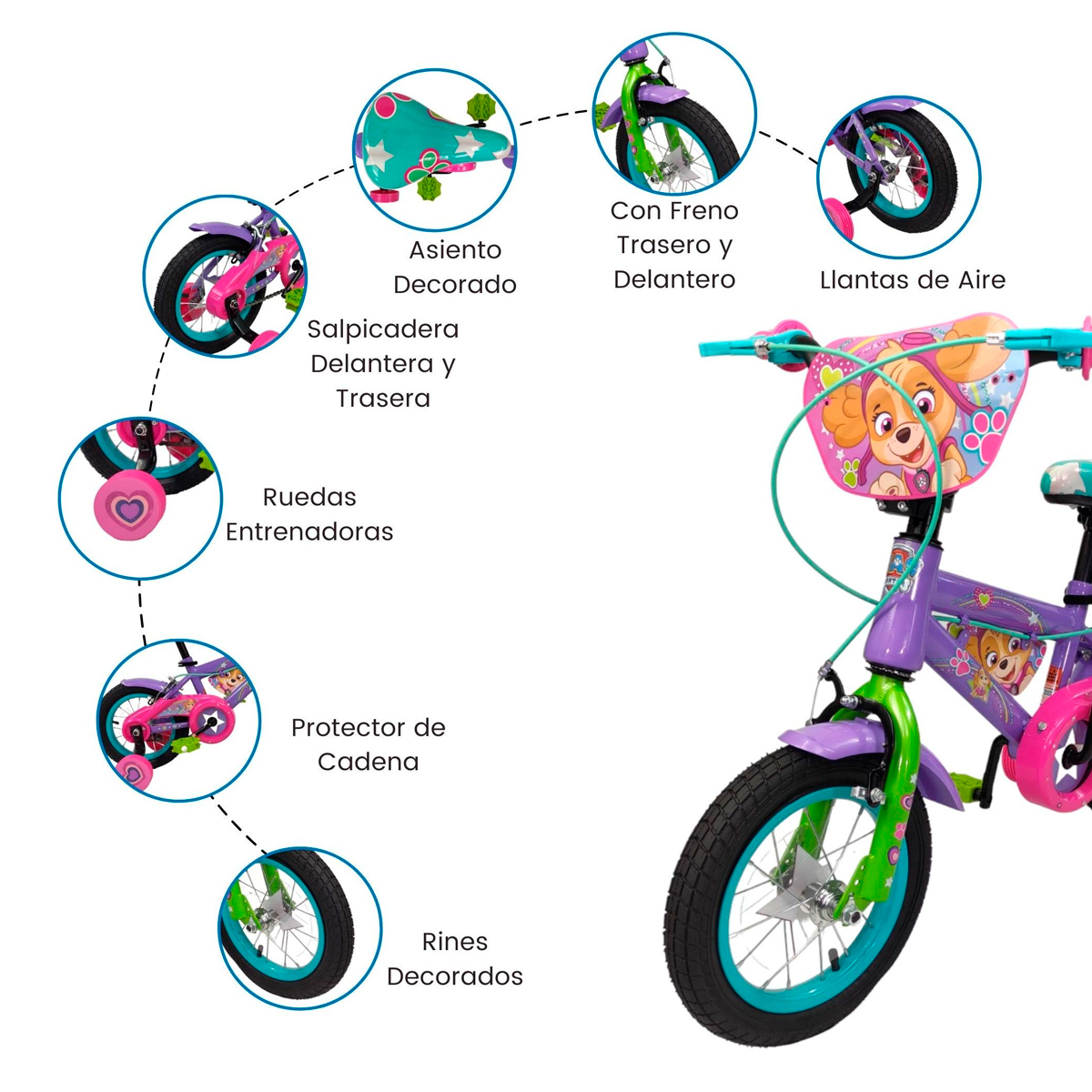 Esta bicicleta, con su diseño inspirado en Patrulla de Cachorros, es la elección perfecta para los niños amantes de la aventura. Está diseñada con un marco resistente que garantiza la seguridad de su hijo mientras se divierte. Las ruedas son suaves y fáciles de maniobrar, lo que hace que esta bicicleta sea ideal para principiantes. Lo más destacado de esta bicicleta es su diseño inspirado en Patrulla de Cachorros. Los colores brillantes y los gráficos audaces hacen que cada paseo sea aún más emocionante.