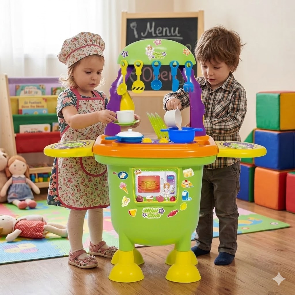 Sumérgete en un mundo de diversión y aprendizaje con la Cocina Para Niños De Juguete Mini Chef MyToy Color Rosa. Este juguete, diseñado con un atractivo color rosa, es perfecto para los pequeños chefs en casa que aman imitar a los adultos en la cocina. El modelo 5532 de MyToy no incluye refrigerador, pero está equipado con una variedad de accesorios que harán que la experiencia de juego sea aún más emocionante. Los niños pueden preparar sus comidas imaginarias, fomentando su creatividad y habilidades motoras finas. Este juguete es ideal para niños que aman el juego de roles y están listos para explorar su pasión por la cocina.