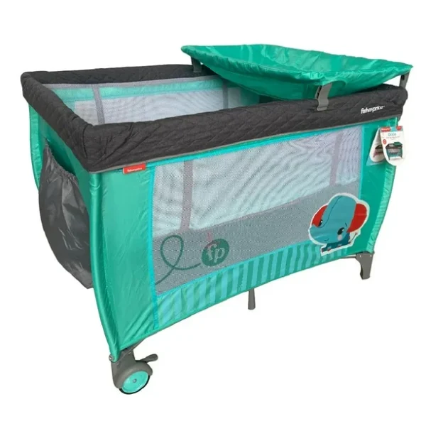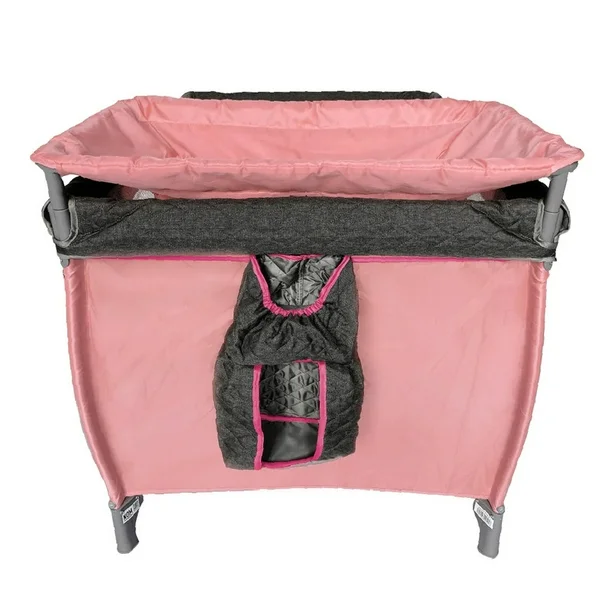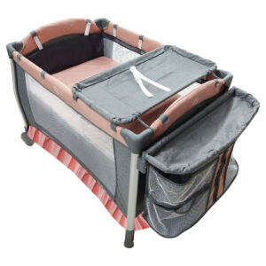 Cuna corral con velo mosquitero que cubre totalmente la cuna, con bolsa de viaje, ideal para espacios pequeños, con cambiador alto y espacio para guardar accesorios.