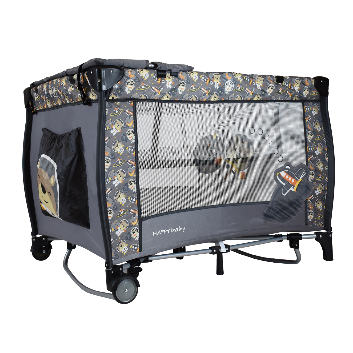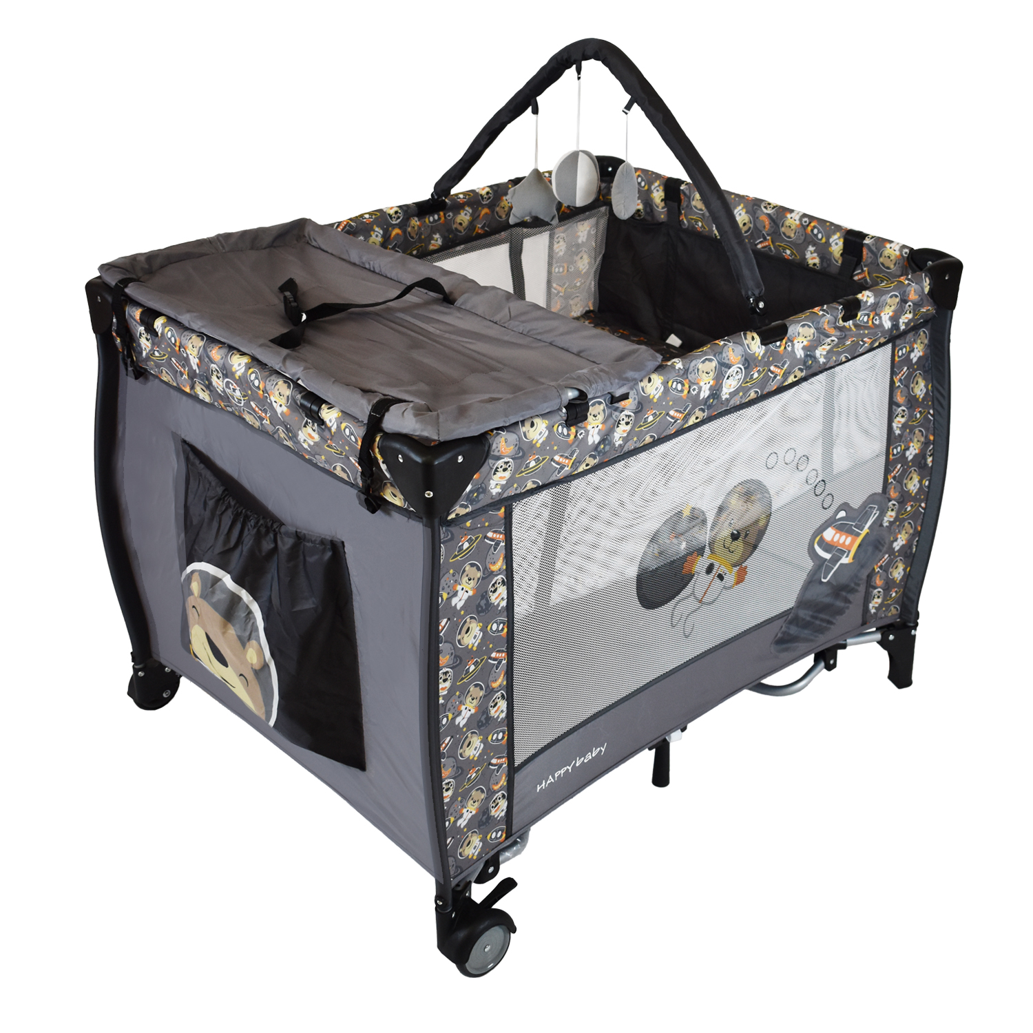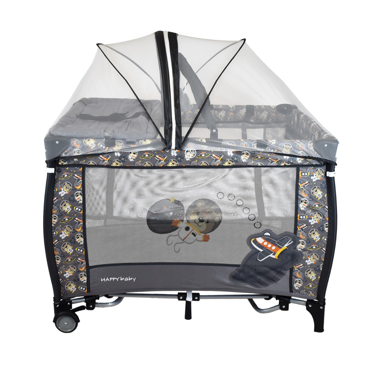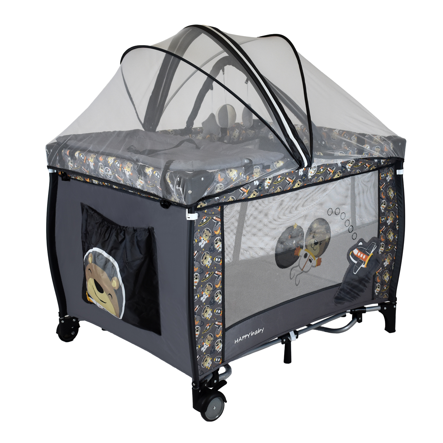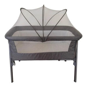 Cuna corral con velo mosquitero que cubre totalmente la cuna, con bolsa de viaje, ideal para espacios pequeños, con cambiador alto y espacio para guardar accesorios.