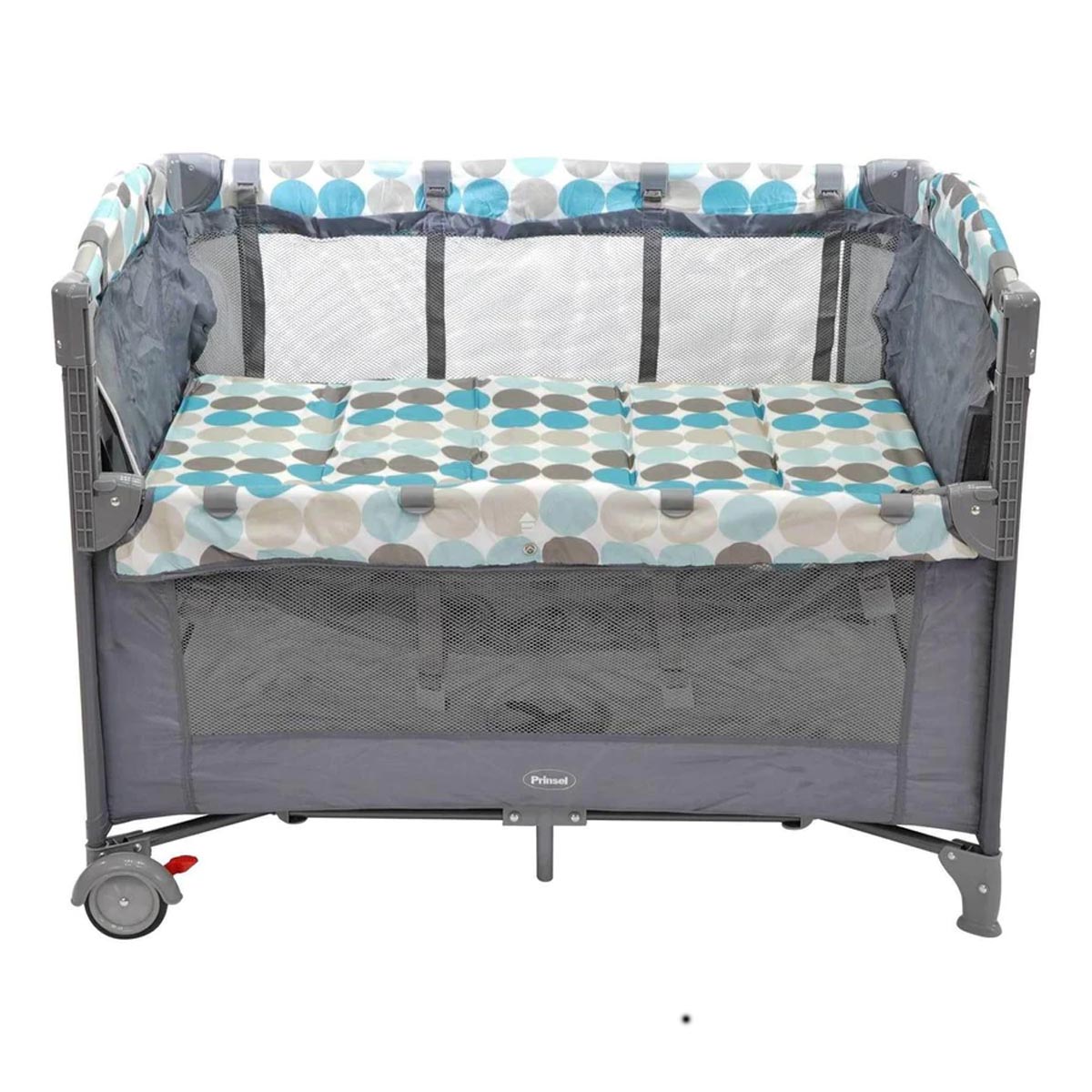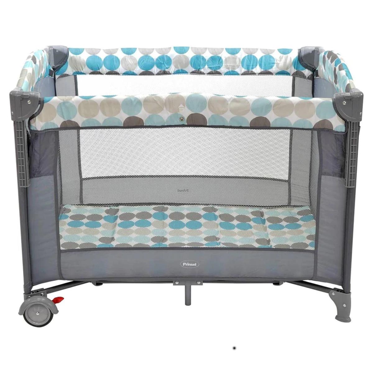 Cuna corral con velo mosquitero que cubre totalmente la cuna, con bolsa de viaje, ideal para espacios pequeños, con cambiador alto y espacio para guardar accesorios.