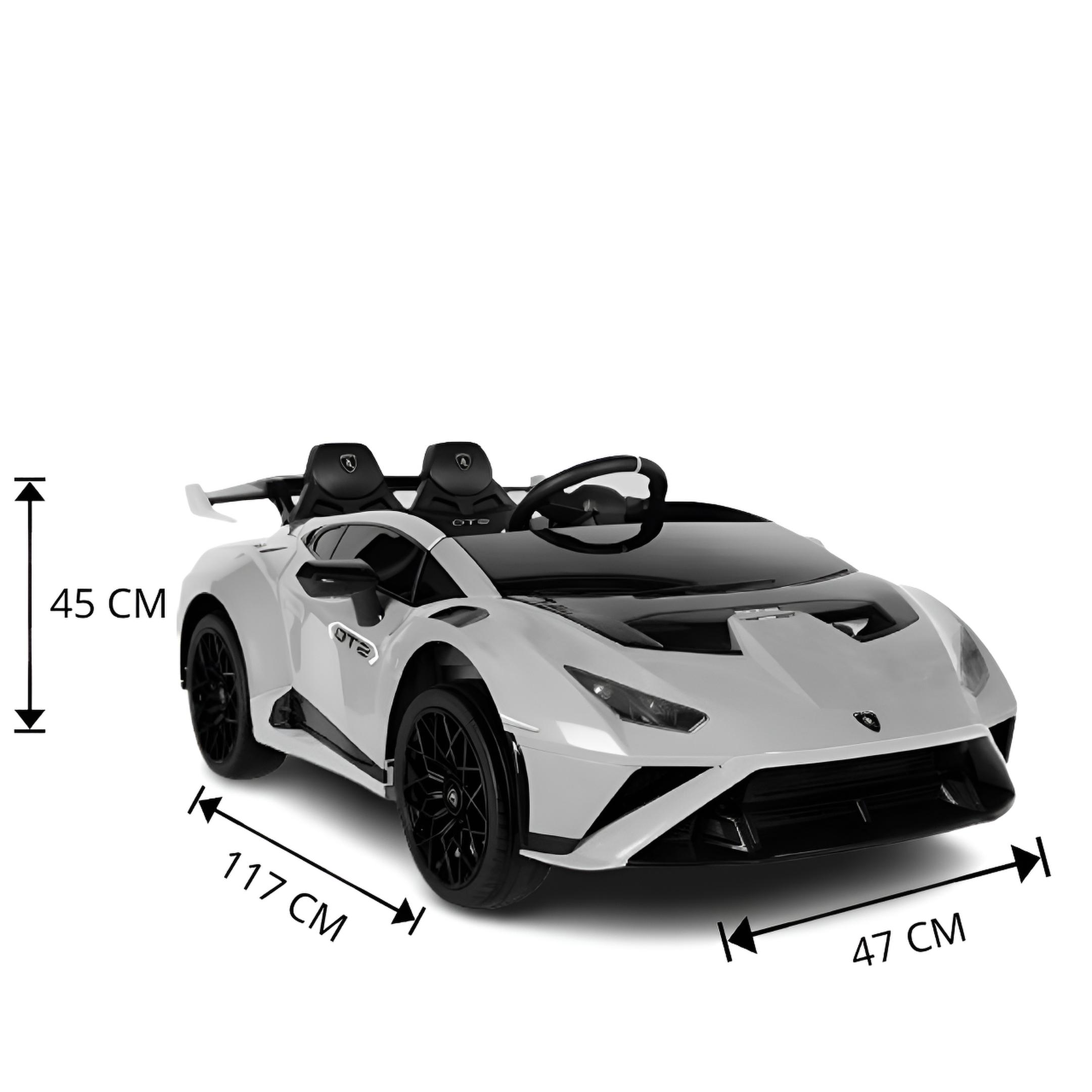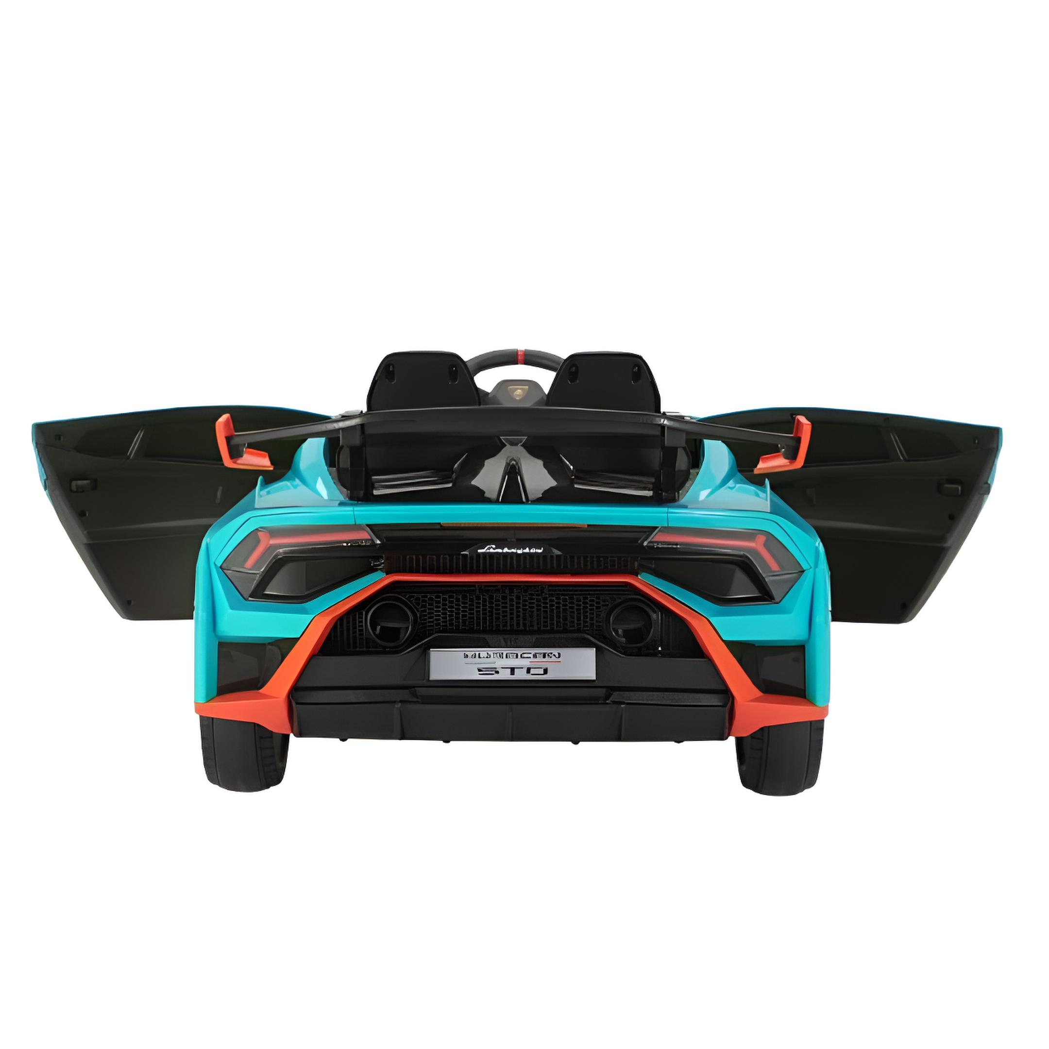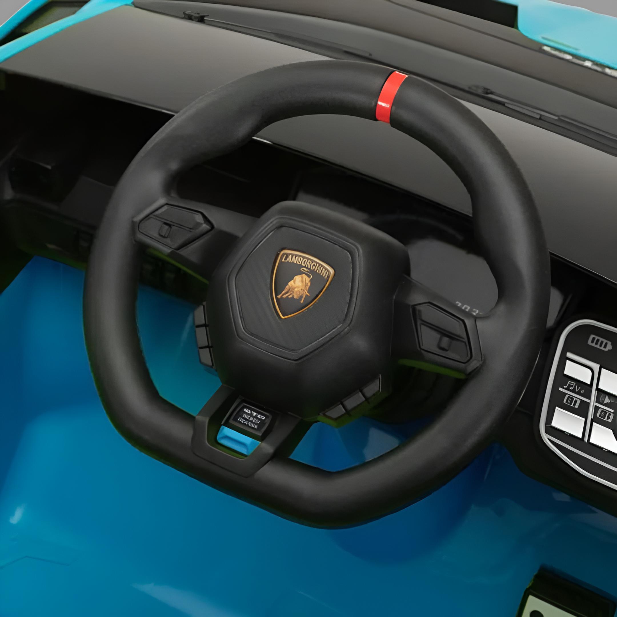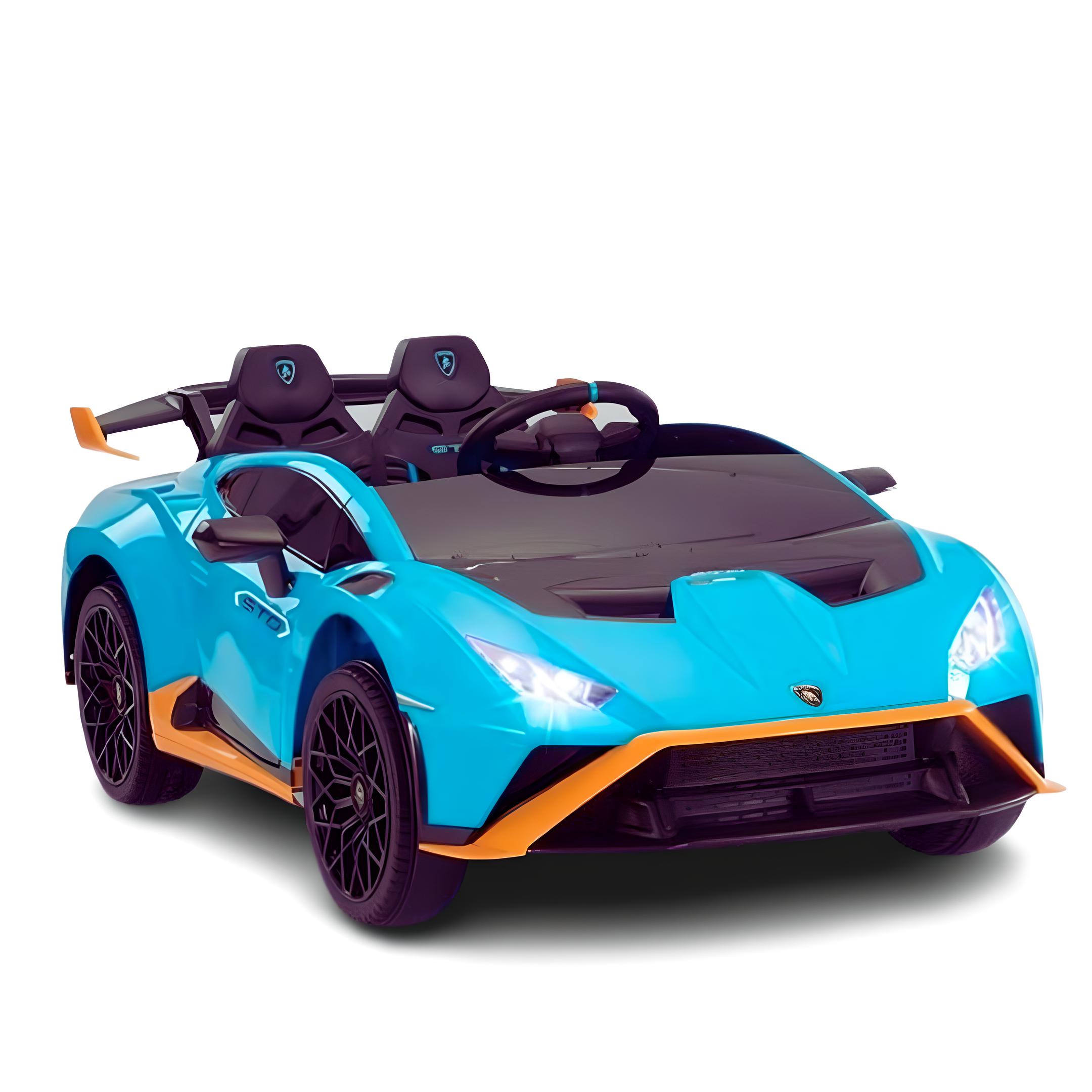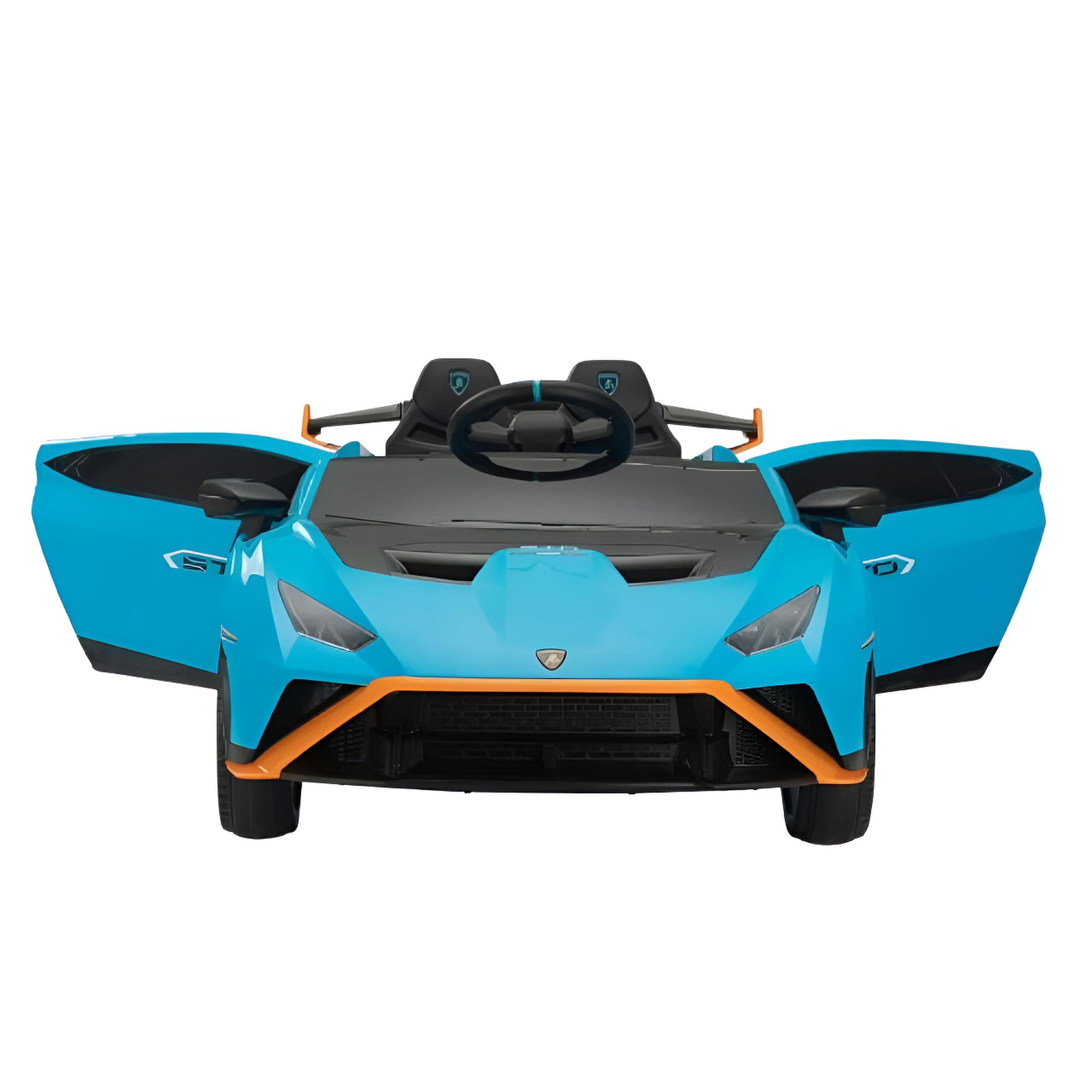 Montable eléctrico Lamborghini Huracán con batería de 12V y doble motor, diseñado para niños de 3 a 6 años.