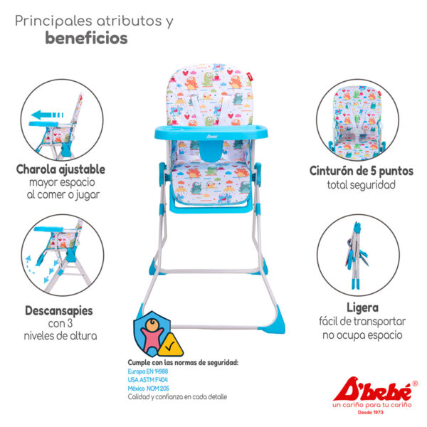 Las comidas se convierten en un momento de tranquilidad y conexión familiar. Su diseño inteligente no solo resuelve la problemática de la falta de espacio y la seguridad, sino que también transforma cada comida en una aventura cómoda y divertida para tu bebé.