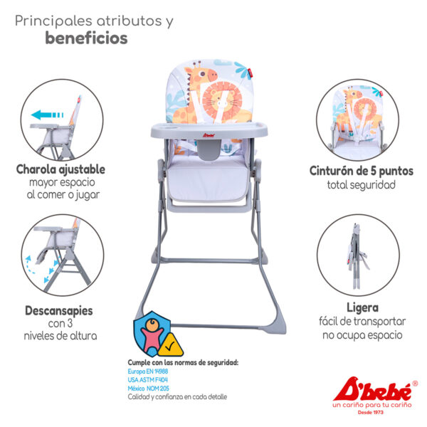 Las comidas se convierten en un momento de tranquilidad y conexión familiar. Su diseño inteligente no solo resuelve la problemática de la falta de espacio y la seguridad, sino que también transforma cada comida en una aventura cómoda y divertida para tu bebé.