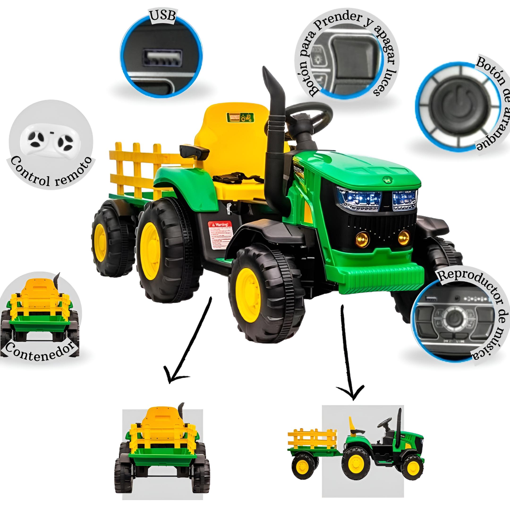 Montable Tractor de Granja con batería de 12V y dos motores potentes.