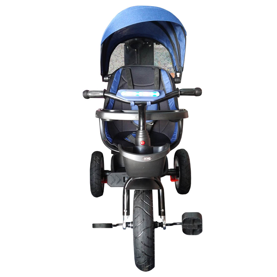 Asiento giratorio 360 grados., Llantas de caucho y aire., Sistema de bastón dirigible., Manubrio con luz y sonido.