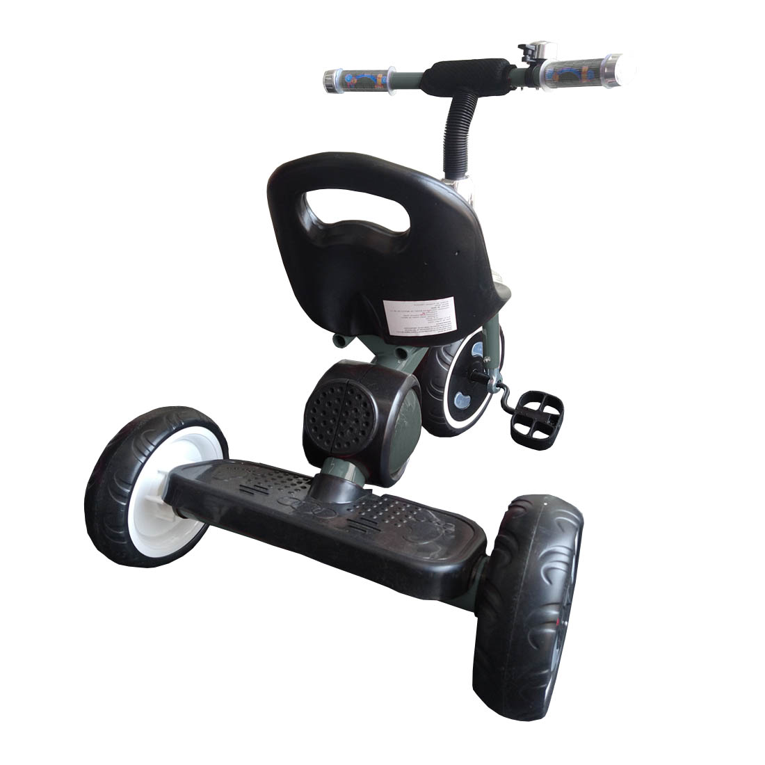 Triciclo Musical con Luz en las 3 llantas de EVA, manubrio con cubierta, estructura de metal.