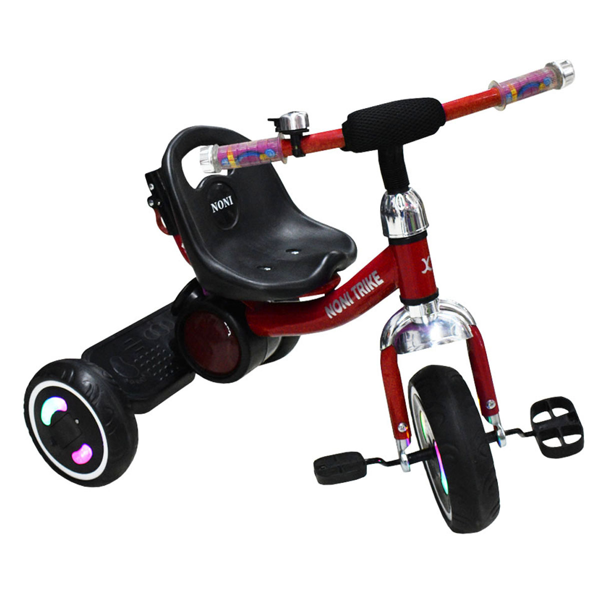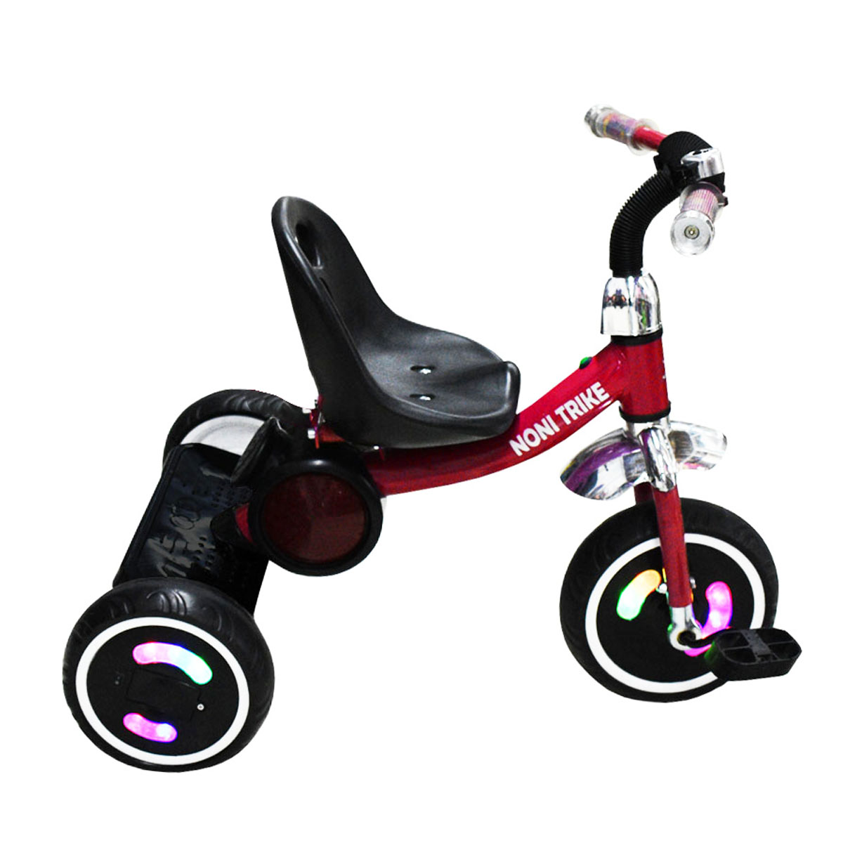 Triciclo Musical con Luz en las 3 llantas de EVA, manubrio con cubierta, estructura de metal.